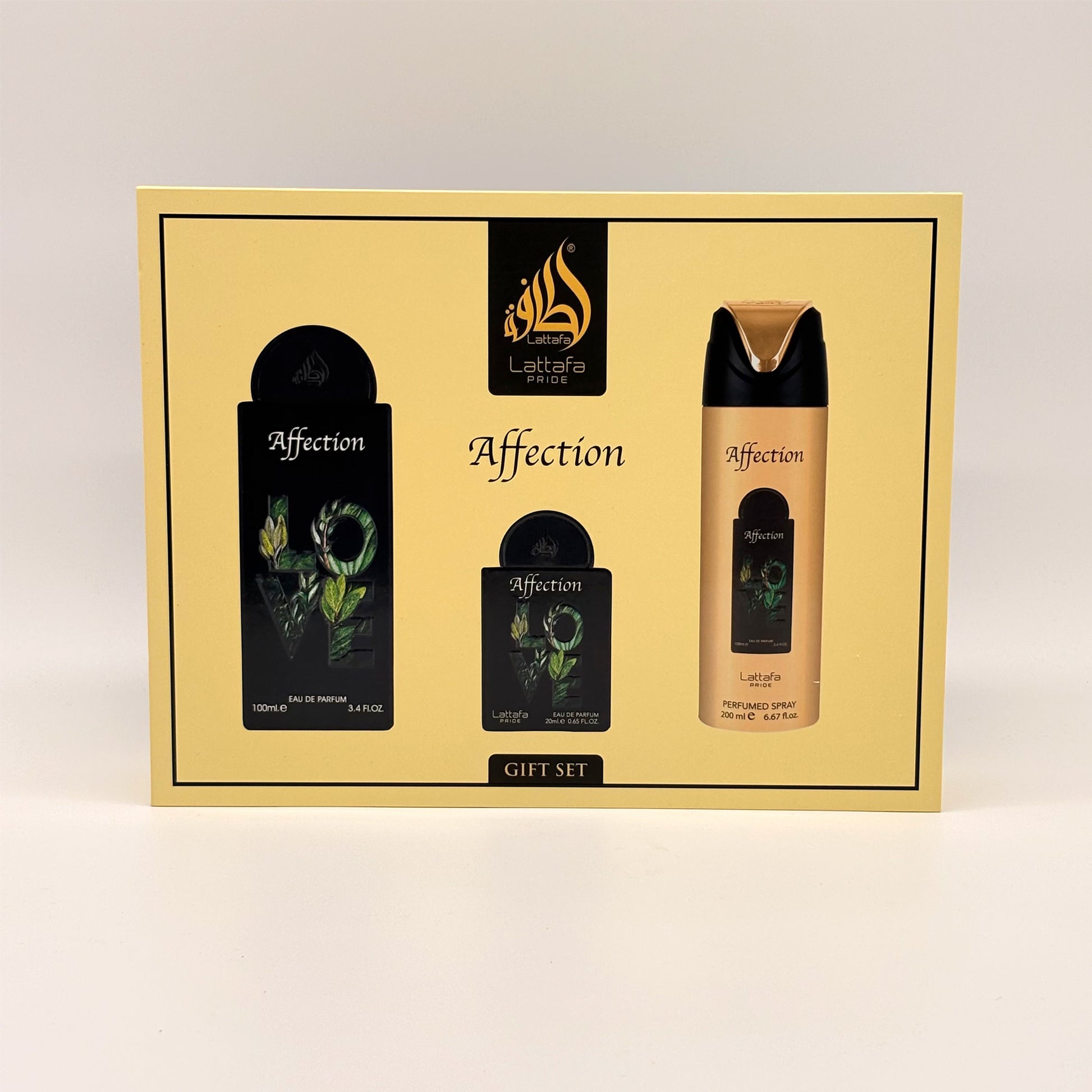 LATTAFA AFFECTION 3 PC SET FOR MEN 100 ML + 20 ML + 200 ML BODY SPRAY + TRAVEL SIZE