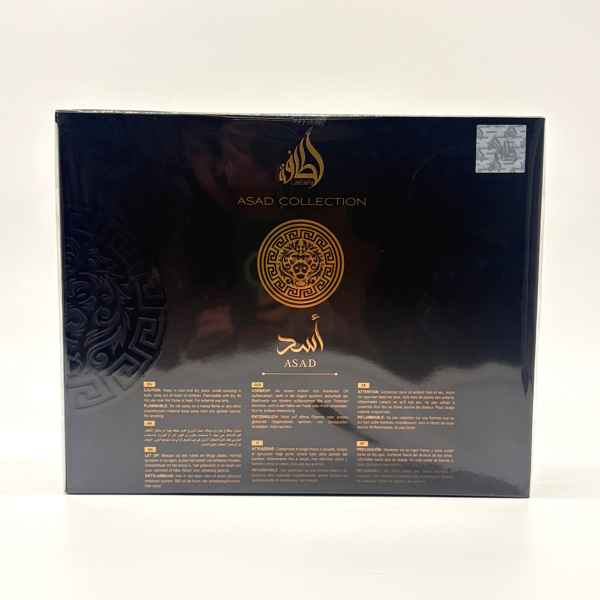 LATTAFA ASAD 3 PC SET 3.4 OZ EDP + 6.67 OZ BODY SPRAY + 1.7 OZ HAIR MIST