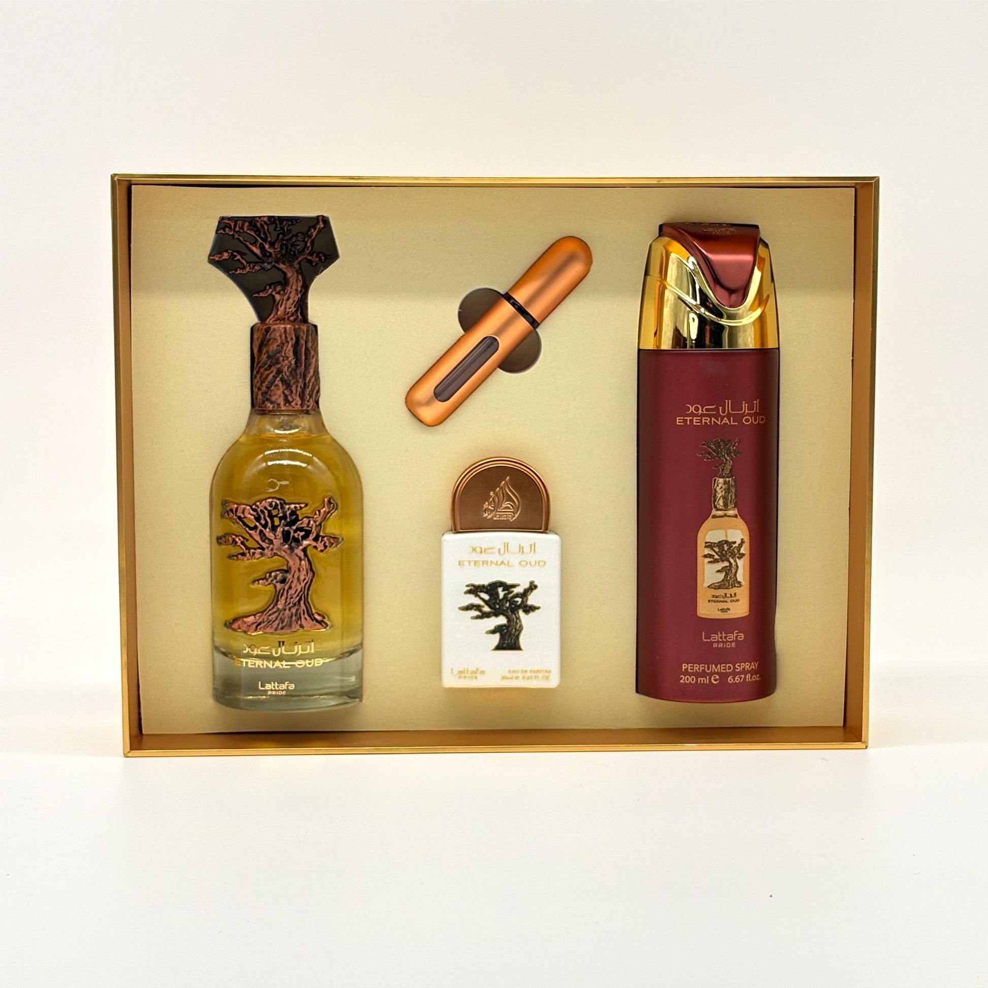 LATTAFA ETERNAL OUD 3 PC SET FOR MEN 100 ML + 20 ML + 200 ML BODY SPRAY + TRAVEL SIZE