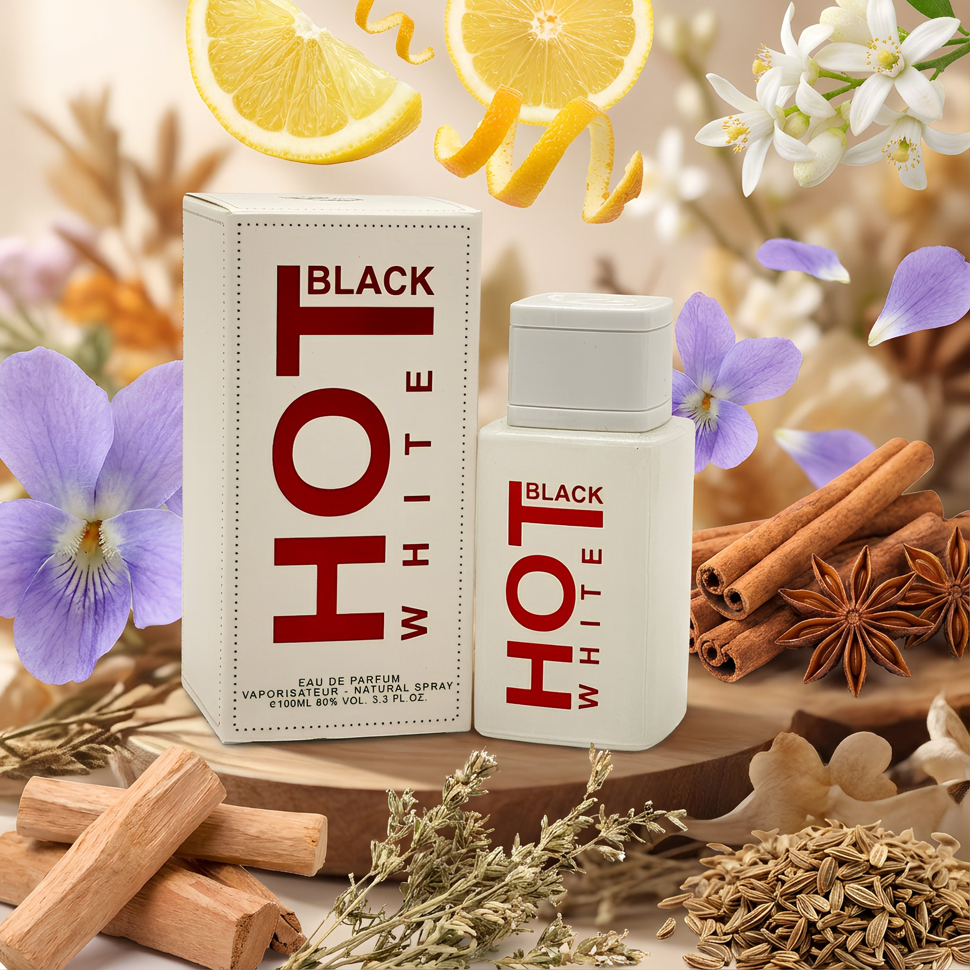 HOT Black White is a fresh, energetic scent with a modern twist. It opens bright and clean, settles into a smooth aromatic heart, and leaves a soft masculine trail. Perfect for daily wear, gym, or casual outings.