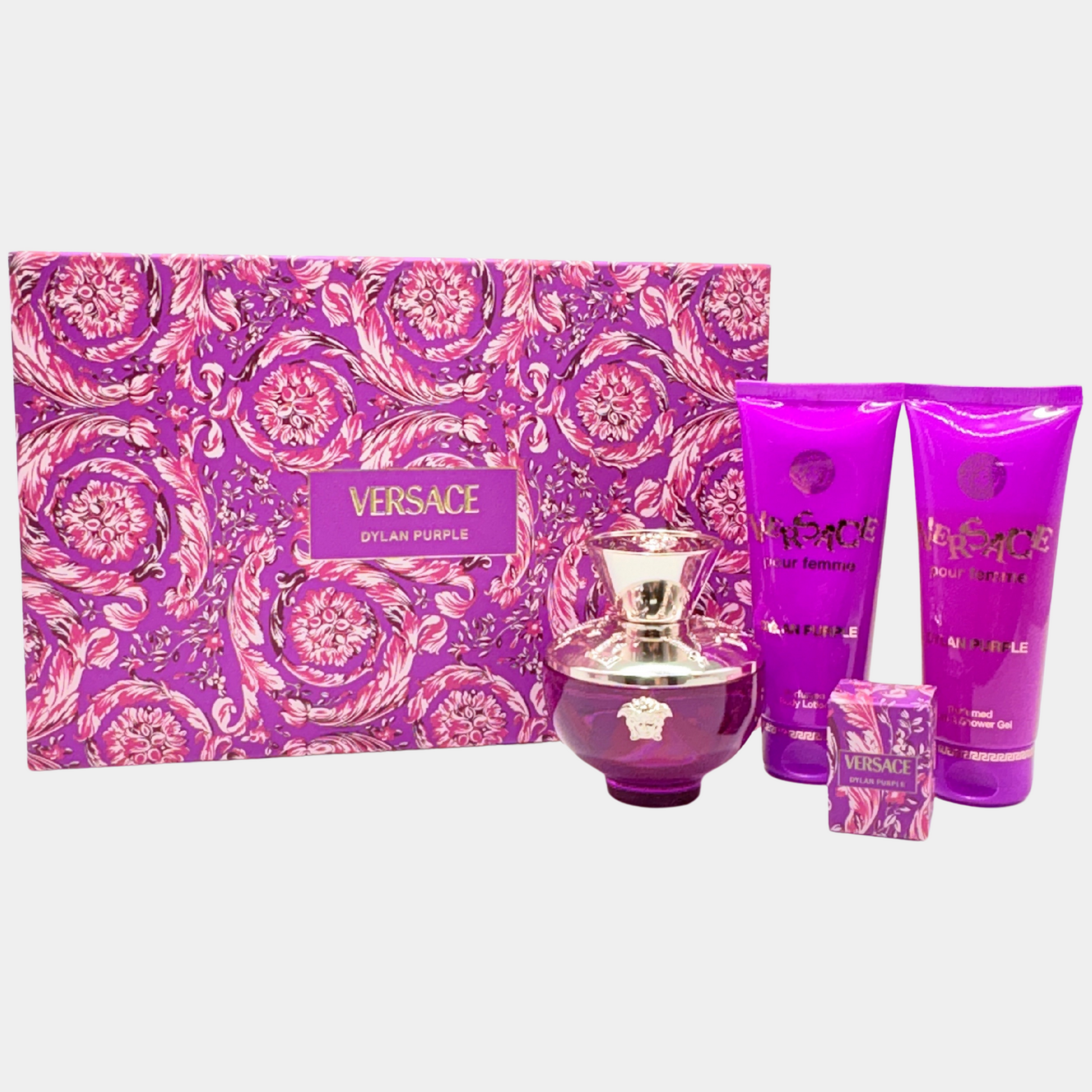 VERSACE DYLAN PURPLE 4 PC SET 3.4 OZ EDP + .17 OZ EDP + 3.4 OZ B/L + 3.4 OZ S/G
